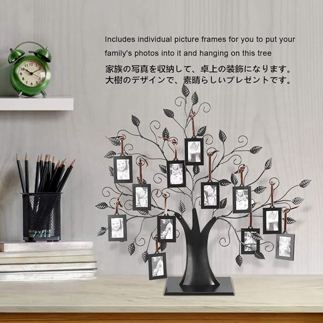 【すばらしい写真展示台】この美しい金属の木はどんな部屋でも見事に見えます。このフォトフレームは家族の世代を祝う素晴らしい方法であり、何年にもわたって宝物となる贈り物になるフォトフレームです。この特別な写真ホルダーはデスクトップ、カウンター、机などの目立つ場所に置くことができ、カフェ、バー、宴会、結婚式などでも使用できます。