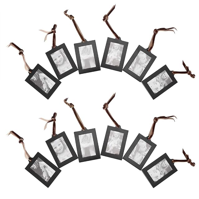 【6枚/12枚】6.4×4.6cmのフォトフレームを吊る写真の家族が成長した様子をご覧ください。 6枚または12枚のミニフォトフレームで、それぞれリボンが付いているのでどこにでも固定できます。
