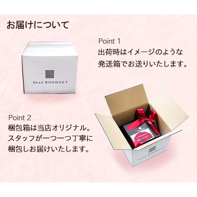 お届け先がご注文者様と異なる場合(進物用)は商品をカートに入れ、「ギフトに設定」をチェックしてレジを進めてください。(「ギフトに設定」が設定されていない場合、送り主様がわからない状態でお届けされます)※この商品はDearBouquetオリジナル商品です。プレゼント用にもオススメです。