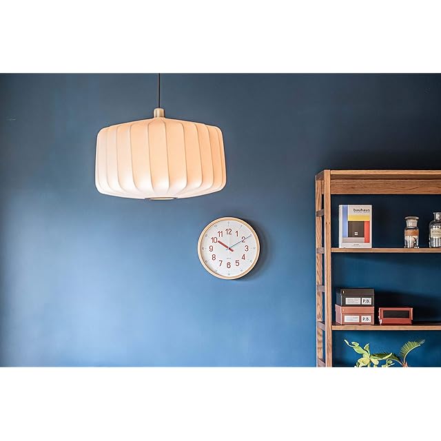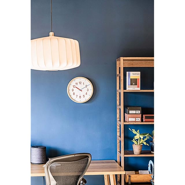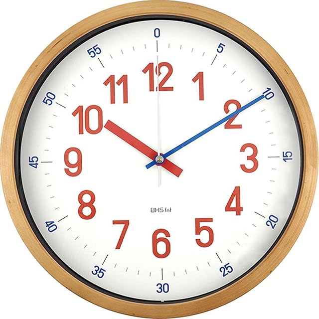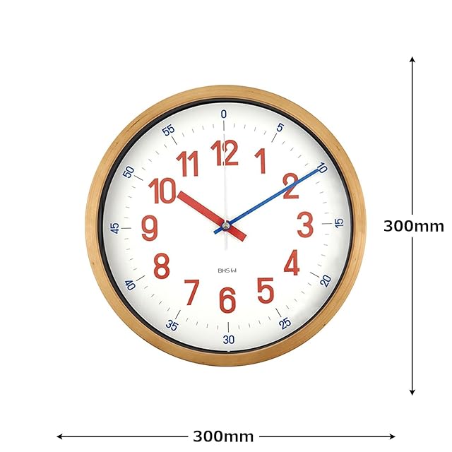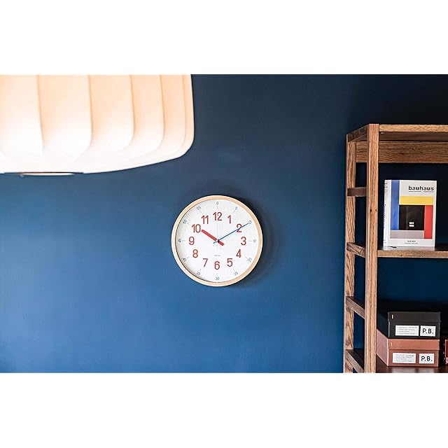 バウハウスの復刻フォントを使用した知育クロック。毎時を示す数字と針は赤、分 を示す数字と針は青と、数字と針を色で統一しているのでお子様に時間を教える のに最適です。