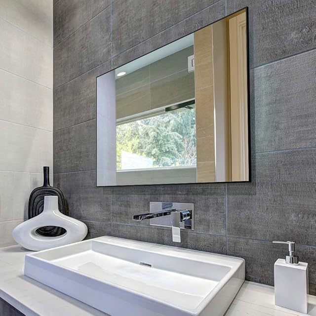 洗練されたデザイン:91.4 cm x 61.0 cm モダンなブラックフレームミラーデザインは、現代的な仕上がりを提供します。