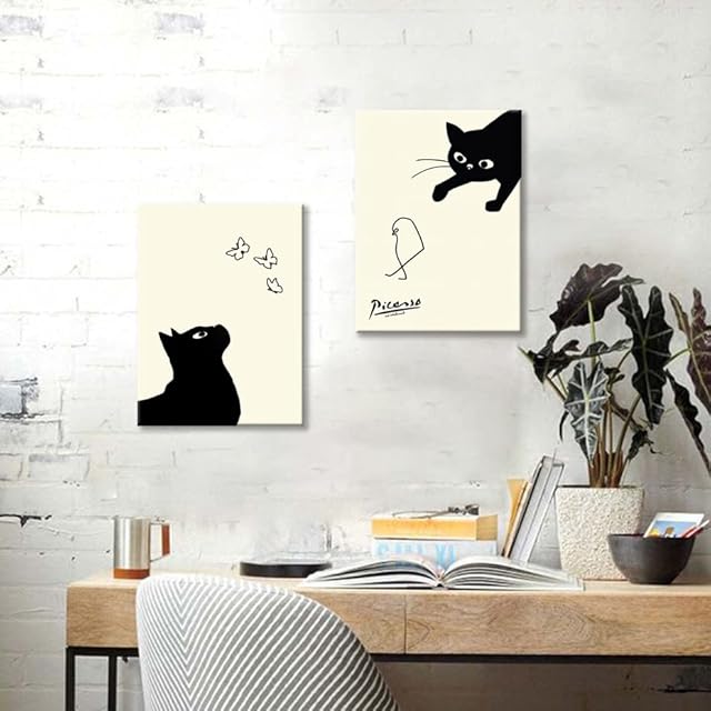 ピカソ ネコの絵 ネコとヒヨコ 絵画 2枚セット アート パネル 鳥を捕まえる猫 絵 アートパネル アートフレーム モダン ポスター 装飾画 キャンバス 飾り絵 玄関 シリーズ アートボード 部屋飾り 玄関 壁掛け 壁飾り 壁の絵 ソファの背景絵画 木枠付きの完成品