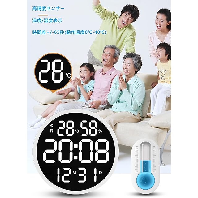 ■【多機能】クラシックな円形の大きなスクリーン、ユニークなカラーデジタルデザイン、おしゃれで見やすく、カレンダー/カウントダウン/アラーム/時間/日付/温度/湿度/同スクリーン表示、メモリーモード、10段階明るさ調節、4色照明、リモコン操作、操作が簡単です。