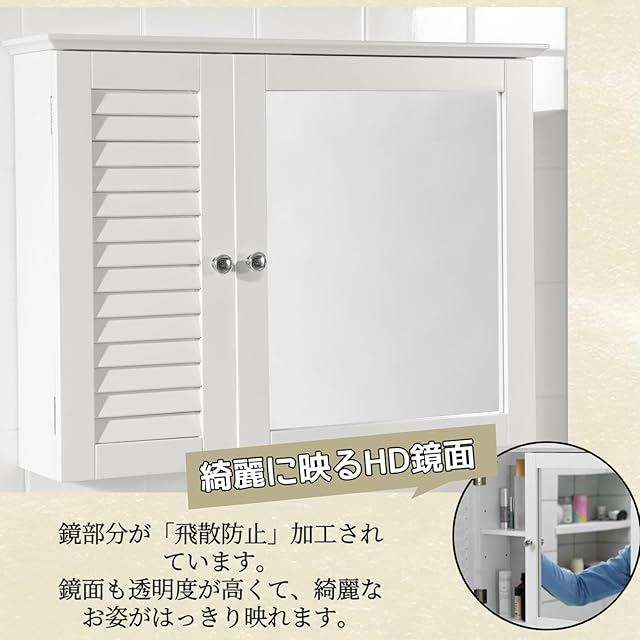 【綺麗に映るHD鏡面】鏡面も透明度が高くて、綺麗なお姿がはっきり映れます。鏡部分が「飛散防止」加工されています。