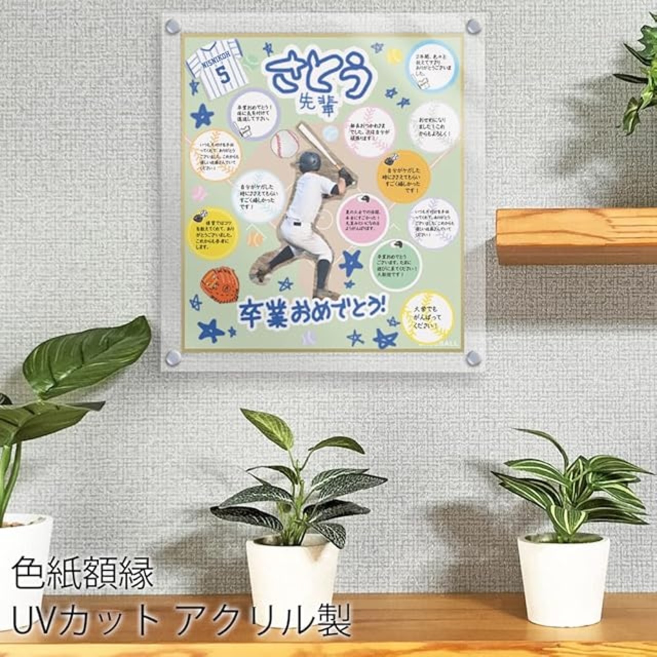 大切な思い出を美しく保存するアクリル製のフレーム。子供の誕生祝いの色紙や、卒業・卒団にもらった寄せ書きの色紙、さらには結婚記念に贈られた似顔絵、有名人のサイン色紙など、これらの特別な瞬間を鮮やかに保ち続けたいと願う方には、UVカット機能付きアクリルフレーム製が最適です。写真や色紙を日光や紫外線による色褪せから保護するこのフレームは透明度の高いアクリル素材を使用しており、色褪せを防ぐだけでなく、どんなインテリアにもマッチするおしゃれなデザインが特徴です。縦置き、横置き、壁掛けが可能なため、お部屋のスタイルに合わせて自由に飾ることができます。