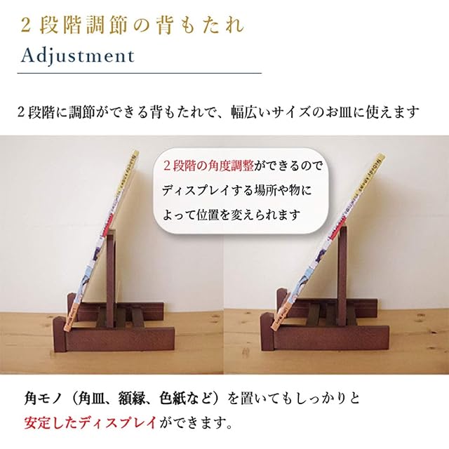 ・木製の皿スタンド。額縁立て ディスプレイスタンド イーゼル プレートスタンド 和皿 絵皿 有田焼 九谷焼 小皿から大皿 賞状 遺影 過去帳など様々な用途にご利用いただけます。
