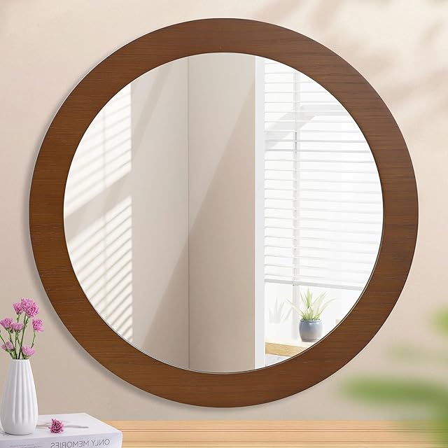 【商品仕様】木製の丸型ミラーサイズ:直径30cm。フレーム厚み4cm。本体重量:1.2KG。壁掛け鏡はお部屋に欠かせない飾りとして、一枚だけで取り付けると、お部屋のスペースが明るく広く見えて、温かみのある優しい雰囲気に!