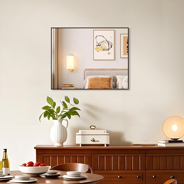 幅広い用途: 金属フレームの長方形ミラーは、バスルーム、ベッドルーム、リビングルーム、玄関、暖炉、ダイニングルーム、農家に適しています。古典的な黒い壁のミラーは完全に理想的な近代的な装飾的なミラーを作る、ミニマリストと実用的な、任意の装飾と一致させることができる