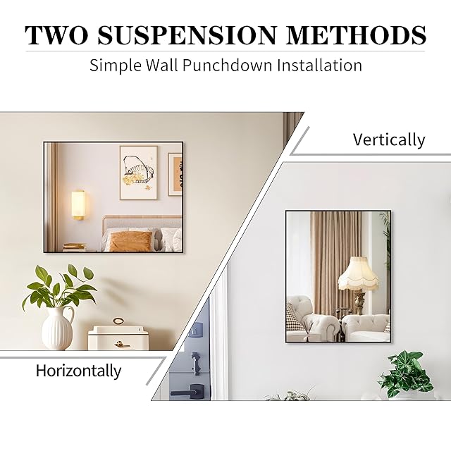 水平/垂直設置: 壁掛けミラーの背面にはフックがあらかじめ取り付けられており、付属のネジを使って電動ドリルで素早く取り付けることができます。実際の状況に応じて、壁掛けミラーは垂直または水平に吊り下げることができます