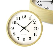 【商品詳細】サイズ:約Φ306×50mm 重量:約900g 材質:ホワイトアッシュ、ガラス、MDF カラー:イエロー 生産国:日本 仕様:スイープムーブメント 付属品:説明書、保証書、単3電池、壁掛け用ネジ