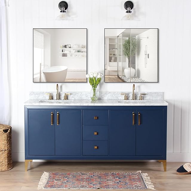 現代の浴室鏡:ブラックフレームの浴室鏡は限られた空間内で無限の想像力を提供し、まるであなたがより明るく、より広い環境にいるように、あなたのどんな装飾スタイルにもマッチすることができます。
