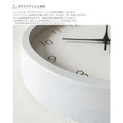 【商品詳細】サイズ:約Φ306×50mm 重量:約900g 材質:ホワイトアッシュ、ガラス、MDF カラー:ホワイト 生産国:日本 仕様:スイープムーブメント 付属品:説明書、保証書、単3電池、壁掛け用ネジ