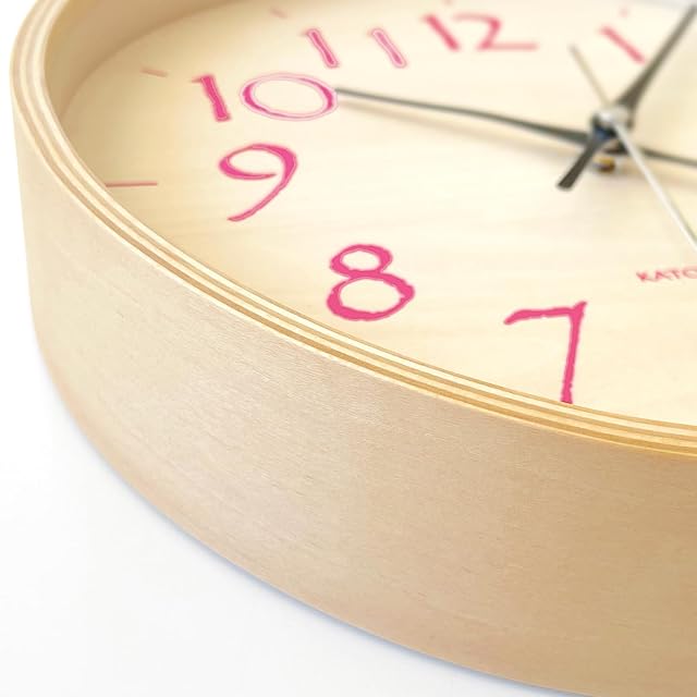 サイズ:約Φ252×50mm 重量:約600g 材質:シナベニヤ 生産国:日本 カラー:ライトピンク 仕様:スイープムーブメント 付属品:説明書、保証書、単3電池、壁掛け用ネジ