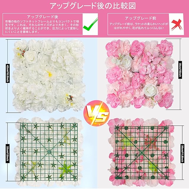 【アップグレードされたパネルデザイン】: このパッケージにはアップグレードされたフラワーパネルが9枚含まれており、市場の他のソフトメッシュフレームと比較してよりコンパクトで頑丈です。これは、サイズが大きく、形状を維持する能力が高く、圧力による変形が起こりにくいことを意味します。 9枚継ぎのサイズは約112*112cm、総面積は約1.3平方メートルです。ご購入前に必要な寸法を測ってください。