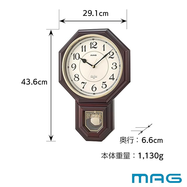 MAG(マグ) 掛け時計 壁掛け時計 柱時計 アナログ 静音 連続秒針 アンティーク レトロ 振り子 メロディ ボンボン ウェストミンスターチャイム 時報 夜間鳴り止め 音量調節 ブラウン 西洋館 W-670 BR ノア精密 | ascend
