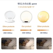 【強光アラーム付き目覚ましライト】このライトは、光療法ランプと同様の強い光を放ち、光源から4インチの距離で光強度は10000luxに達します。紫外線は含まれておらず、通常の目覚ましライトよりもはるかに強力です(通常のライトは同じ距離で約300lux程度です)。