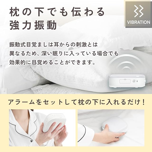 【カスタム可能!振動モード・6種類の選べる大音量アラーム搭載】光だけでなく強力な振動モード・アラーム音を搭載しています(ON、OFF切替可能)。枕の下に入れておくと、起床時間に大きなバイブレーションで起こします。起きるのが苦手な方も振動なら刺激が強いので目覚めやすい!振動のみのモードなら隣の人を起こさずに自分だけを起こす使い方もできます。アラーム音はタイマー、ベル、ハト、小鳥のさえずり、波の音、メロディーの6種類から自由に選べます。5段階音量調整可能で、最大80dBの大音量。光だけで起きるのが不安な方は光と音を併用することができます。
