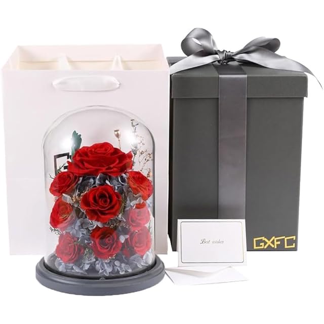 プリザーブドフラワー レッドロー ズバラ 赤い薔薇 バラ花 プレゼント 永遠の花 妻 バラ ギフト ガラスポット ケース入り ライト ロマンティ ック きれい 記念日 プレゼント 手提げ袋 メッセージカード付き 結婚記念日 古希祝い 喜寿祝い 新築 お祝い お見舞い 母の日 父の日