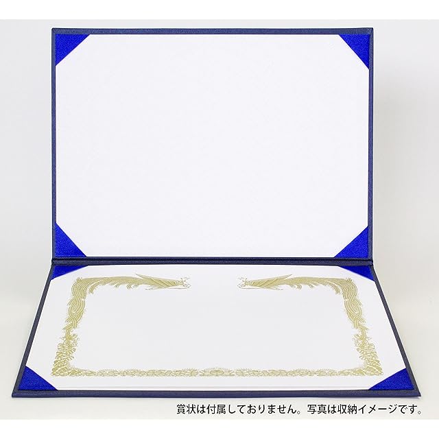 【見返し(内面)部分】白色エンボス紙、【証書(賞状)留めコーナー部】紺色リボン地