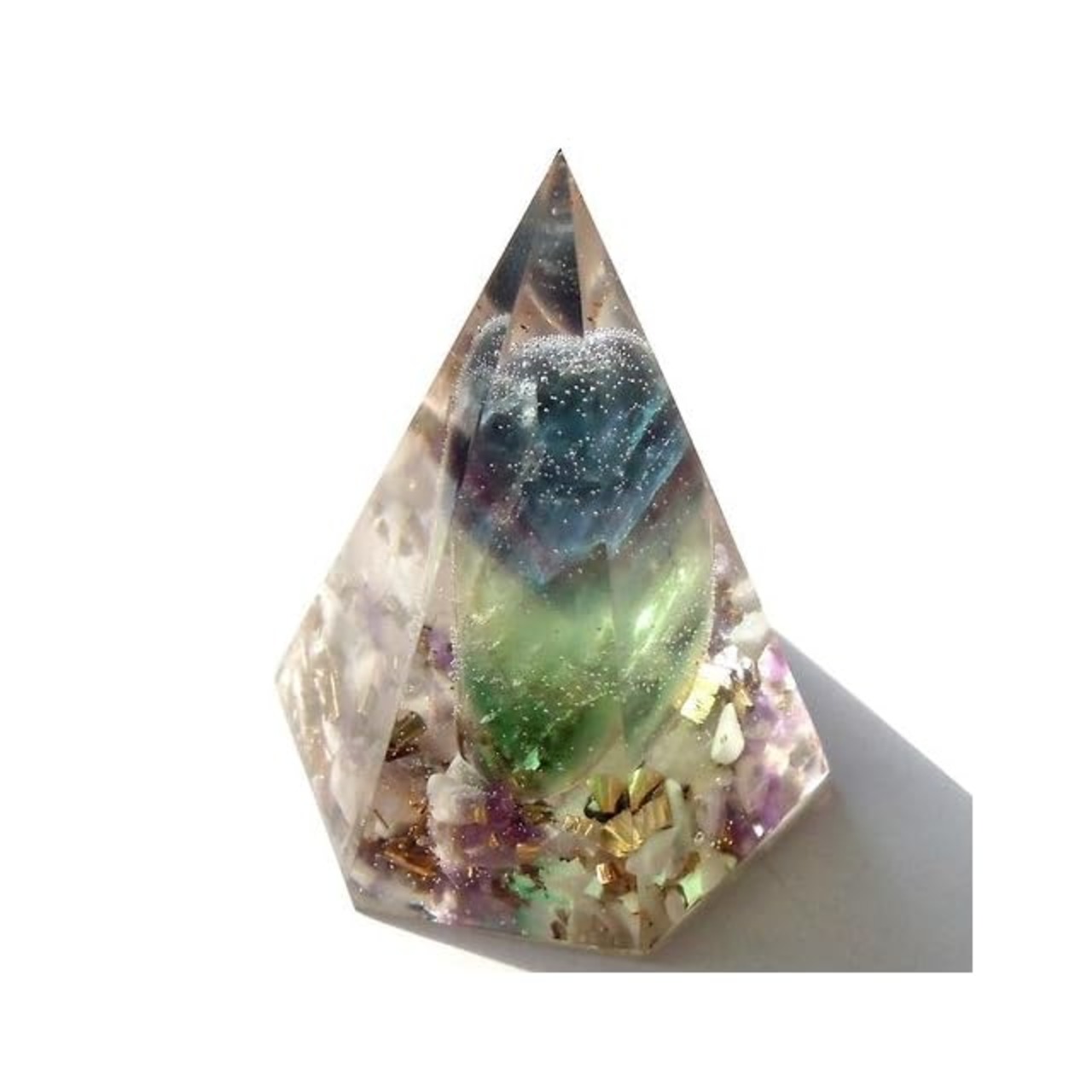 オルゴナイトは全てアーティストによるハンドメイド製作のため、個体差があり、色の濃淡、金属や天然石の量、配置の仕方に違いがあることがあります。入荷の時期によっても違いがあります。この点ご了承下さい。