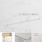 清潔感のあるホワイト系マーブル柄が使いやすい人気の石目柄です。タイルの大きさは約30cm角。水や汚れに強く、リアルな質感を感じられる、おしゃれな床保護リメイクシート。汚しても拭くだけのかんたんお手入れ。適度なクッション性で床を傷から保護。リビングのフローリング、キッチンや洗面所などの水回り、玄関などの床を簡単にリメイクできます。