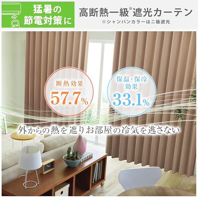 カーテンくれない 1級 遮光カーテン「K-wave-D-plain」 日本製 防炎 ラベル付【40色×140サイズ】 2枚組 節電対策に 保温 保冷 断熱 遮熱 ココア 幅200×丈195cm | ascend