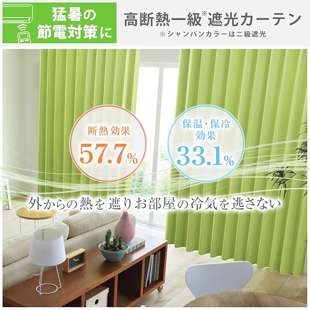 カーテンくれない 1級 遮光カーテン「K-wave-D-plain」 日本製 防炎 ラベル付【40色×140サイズ】 2枚組 節電対策に 保温 保冷 断熱 遮熱 ライトグラス 幅125×丈145cm | ascend