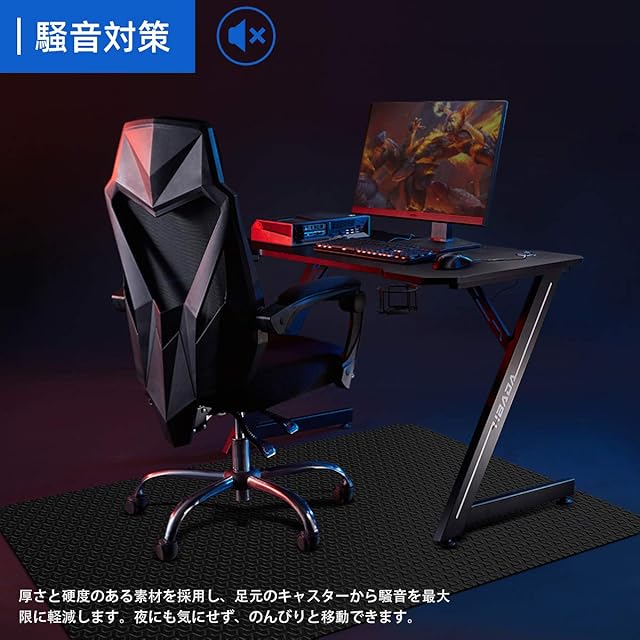 【ベスト厚さ1.5mm・騒音対策】1.5mmの厚さで、キャスターが引っかからなく、沈み込まないよう、方向転換も自由自在に移動できます。段差が気にならない、ロボット掃除機も引っかかることなく、ストレスフリーでお掃除が楽々。大きなキャスターの回転音を軽減することもできます。集合住宅ではマストアイテムです。夜中にゲーミングと作業するときは、騒音を心配することがなく、やり続けます。ヒント:裏面はツルツルのデザインで、しっかりと床面に吸着されますが、畳/カーペットの上には吸着不可です。ご了承くださいますようお願い申し上げます。