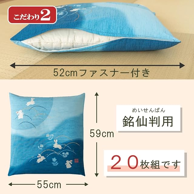 HAPPY SINGU RABO 【 日本製 】 座布団カバー 綿100% 【跳ねうさぎ】 【物事がとんとん拍子に進むと伝わる縁起の良い柄】 ざぶとん カバー 三河産 和室 洋室 来客用 普段使い 業務用 飲食店 業務用 公民館 集会所 来客用 法事 会議室 (ネイビー 20枚組) | ascend