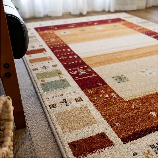 【輸入カーペットを安心してご利用いただくためのお願い】 ●輸入ラグに関して ※同じ商品でも製造ロットの違いによって、サイズや、色味、柄模様の左右が反転していたり、位置がズレている場合がございます。ただし、現地の工場や倉庫での検品をクリアした商品を輸入しています。あらかじめご了承くださいませ。/ ●においに関して ※ご使用当初、裏面に塗られる仕上げの接着塗料(ラテックス剤)のにおいがする場合がございます。人体への影響はありませんが、においに敏感の方や、ご心配の方はご理解の上ご購入お願いいたします。開封後常温のもとで気化(蒸発)するため、においはご使用につれてなくなります。気になる場合は風通しの良いところで陰干ししていただきますと、より早く解消されます。/ ●サイズに関して ※カーペットの製法上、表示サイズより0~3%の誤差がございます。/ ※いずれも商品の初期不良ではございませんので返品・交換は行なっておりません。(※お客様で返品の送料ご負担によるキャンセルは、返品規定に基づきお受けさせていただきます。)/ ※裏面の製品シールは剥がさないでご使用ください。