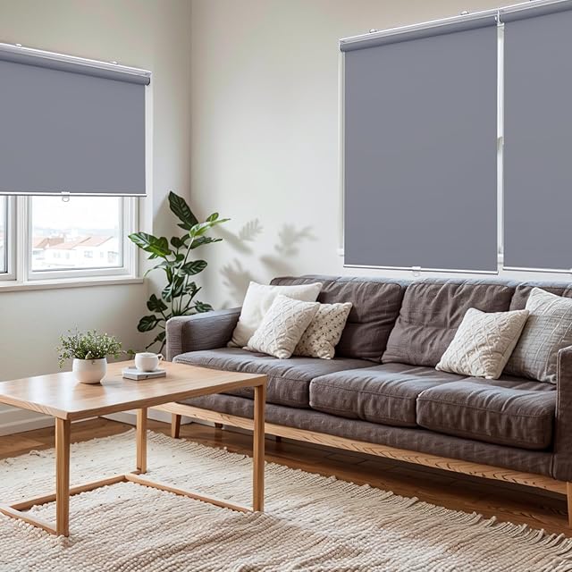Adliy ロールスクリーン ロールカーテン プルコード式 幅60cm 丈135cm グレー 1級遮光 遮熱 断熱 防水防油 防寒 UVカット カーテンレール取り付け 噪音軽減 省エネ対策 闇仕切り プライバシー保護