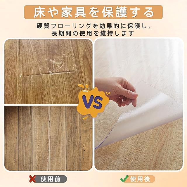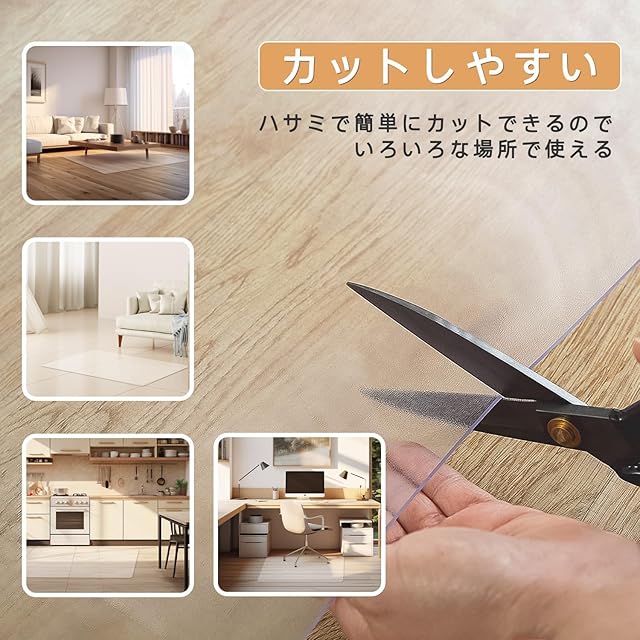 場所に合わせてカット可能: ハサミで簡単にカットできます; イズなので、使いたい場所に合わせてサイズを自由にカットし、ダイニング、オフィスデスク、床のキズ防止用に役に立ちます; 汚れやキズをつけたくない場所にピッタリ合わせて敷くことができます