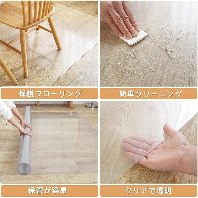 傷つきにくいPVC素材: 床などのイメージを損なわず、部屋の雰囲気を保ちながら安定感のある透明プレースマット; 飲み物をこぼしてもフローリングや畳に染み込まず清潔をキープ;