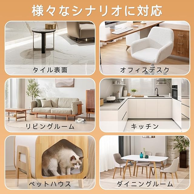 床暖房対応: マットの表面は滑らかで、裏面はつや消しの半透明で高級感があり、床にフィットしやすく、見た目も軽く、肌触りがよく、ずれにくい; PVC素材の特徴のひとつは、耐熱性があるため、床暖房にも使用でき、耐熱温度は85℃まで; 床暖房、フローリング、その他の床材など、幅広い用途に使用できる