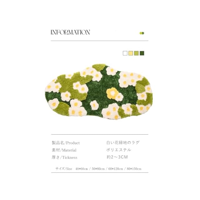 ❤自然の息吹❤白い花がある緑地のデザインで、緑色を基調としています。お部屋に癒しと生気をもたらします。自然の緑色が広がり、心地よい空間を演出し、リラックスした雰囲気を提供します。