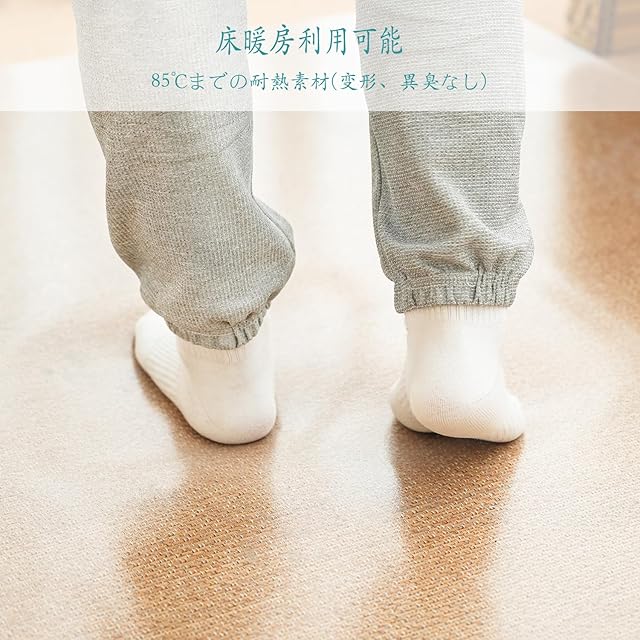 表面にエンボス加工処理:PVC ダイニングマット マットの表面には、エンボス処理が施されています。デスクマット使用するときは、サラッとした感触を与える。こだわりは表面だけではなく、底面をツヤツヤにすることで床に馴染み、ズレにくくなっています。