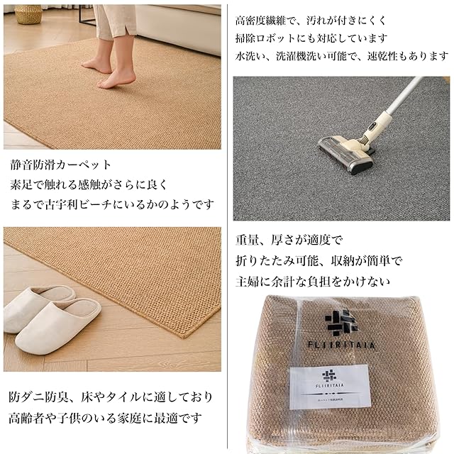 【滑り止め・便利な収納】カーペットの裏側にはTPR素材を使用しており、防滑性が大幅に向上しています。フローリングやタイルの上でも安心してご使用いただけます。優れた防音性も備えているため、高齢者や子供がいる家庭でも安心です。また、このカーペットは折りたたんで収納でき、主婦の方にも便利に整理整頓していただけます。