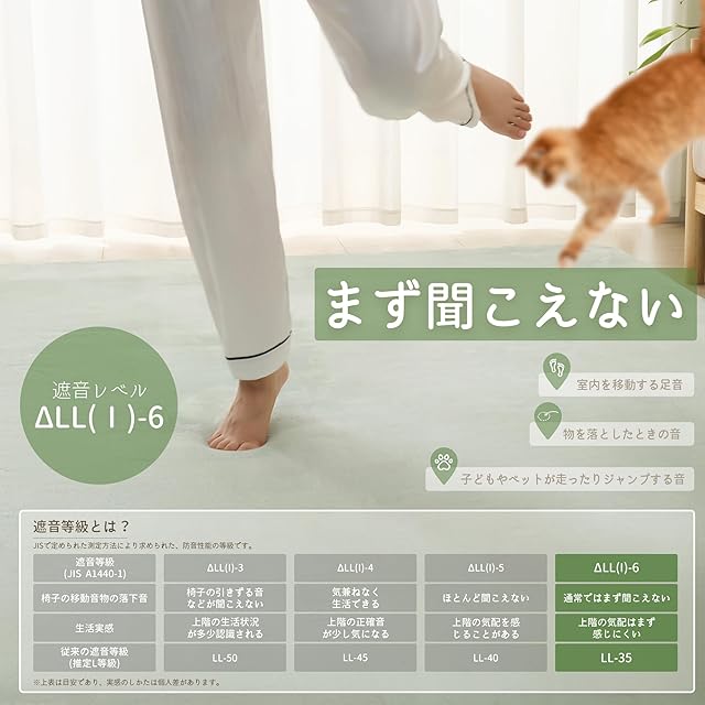 【遮音効果】優れた遮音性能で、子供やペットが上で動き回っても、音を軽減し、周りに配慮した静かな環境を保ちます。