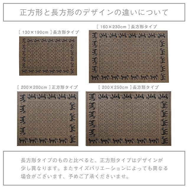 【サイズ】約 200х200 cm / 2帖 / 正方形【カラー】ライトブラウン