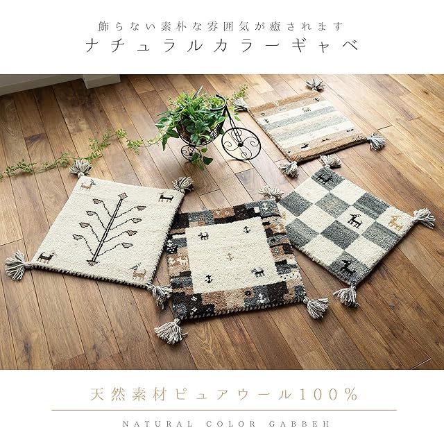 サヤンサヤン 手織り 座布団 チェアマット ボーダー 無染色 ギャベ HG921 40x40 ウール