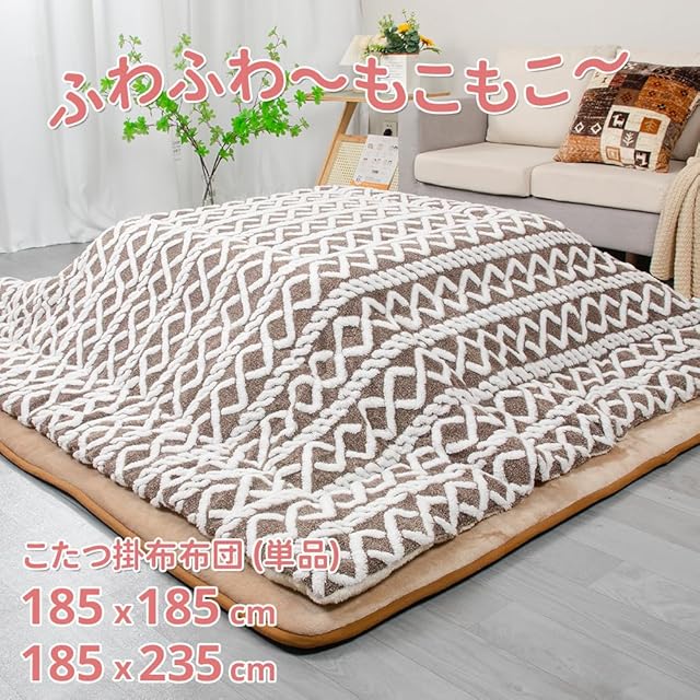 JEMAジェマ こたつ布団 こたつ用布団 こたつ掛け 正方形 大判 こたつふとん 単品 185x185cm あったか こたつ掛け布団 厚手 ジャガード リバーシブル 両面使える ふわふわ ぽかぽか ぬくぬく 冬用 洗える 毛抜けない ブラウン | ascend