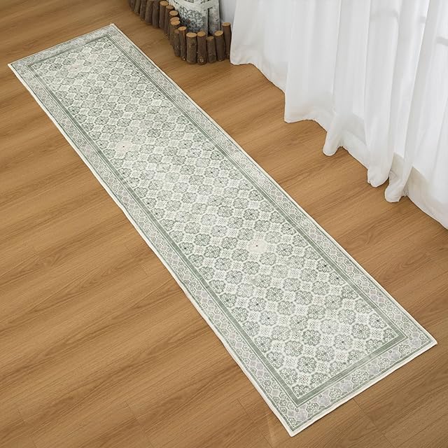 DECOMALL キッチンマット 240 洗える ペルシャ絨毯風 廊下マット カーペット 60x240CM 花柄 台所マット 滑り止め 防ダニ 防虫 防臭 グリーン 緑 床暖房対応