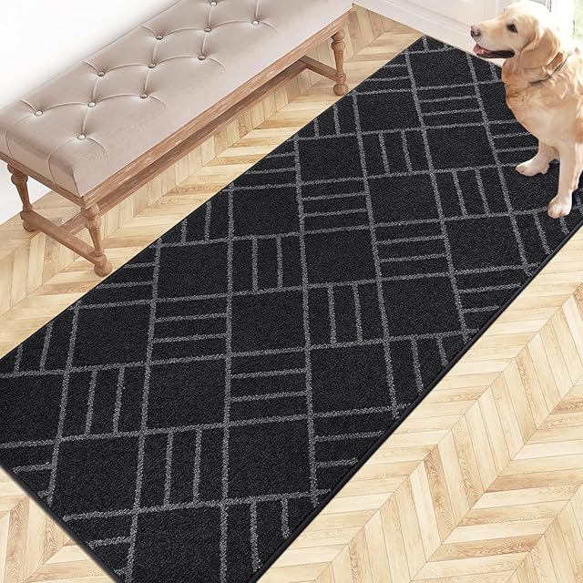 DOMUSTEX 屋内用ドアマット、32" x 70" (約80×178cm)滑り止め玄関ラグ、洗える犬用ドアマット、泥だらけの靴や足跡用の屋内フロアマット