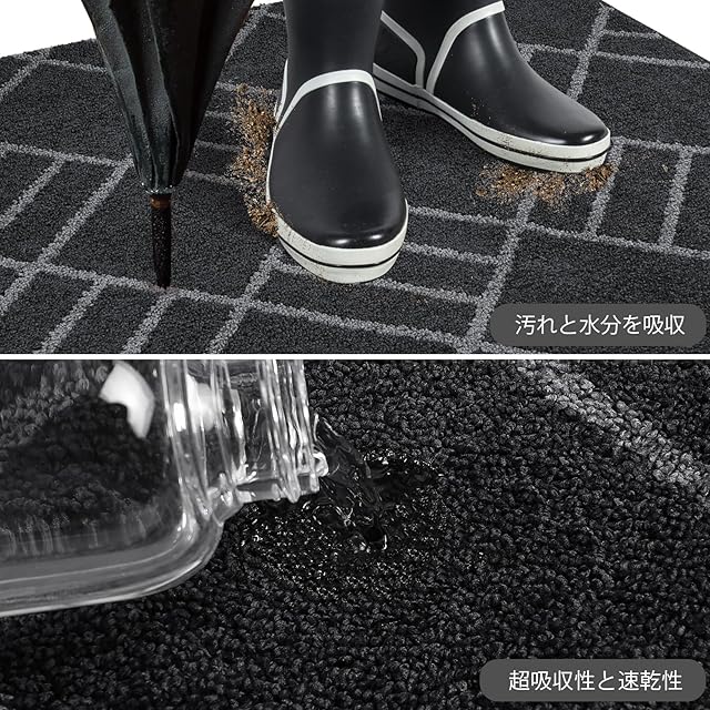 汚れや湿気をはじく: 無数のポリエステルマイクロファイバーを使用した当社のダートラッパーラグは、水を効率的に吸収し、靴から汚れや湿気を取り除き、特に雨や雪、泥の天候でも家の内部を清潔で乾燥した状態に保ちます。