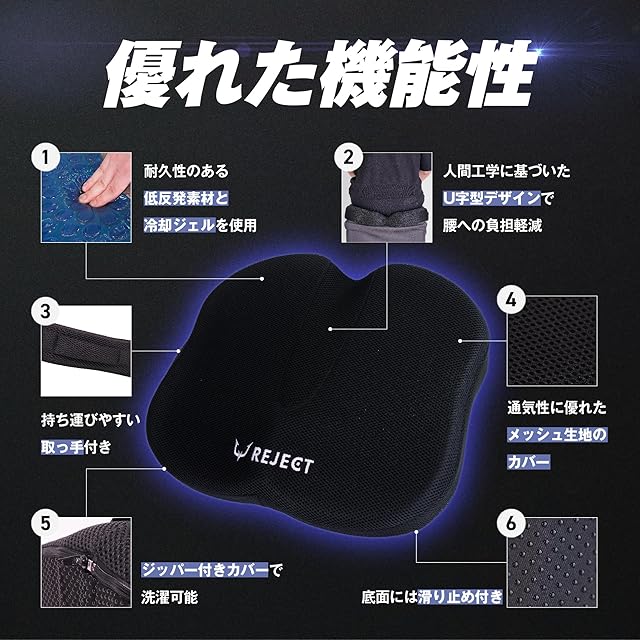【プロeスポーツチーム監修】 REJECT クッション 椅子 腰痛 ゲーミングチェア オフィスチェア リモートワーク デスクワーク ゲルクッション 座布団 低反発 姿勢矯正 坐骨神経痛 GAMING CUSHION (BUTTERFLY TYPE) | ascend