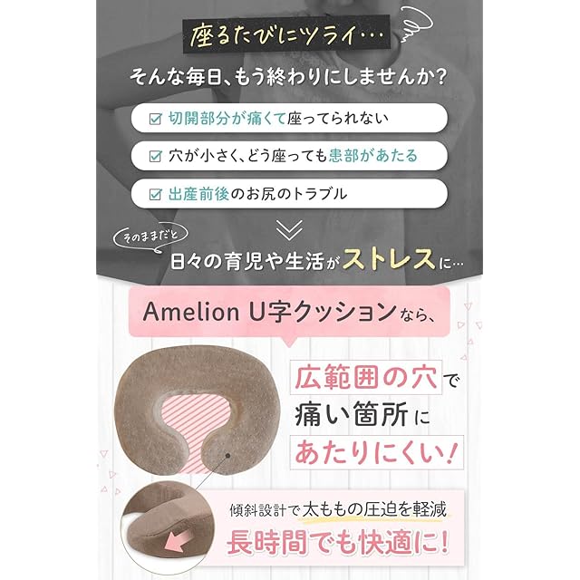 【U字クッションの臭い改善について】クッションの材質(ポリウレタンフォーム)の特性上、どうしても臭いが出てしまいます。害はございませんので風通しのいい所で2-3日ほど干していただきますと無臭になりますのでお試しください。【独自の金型】ありそうでなかったU字タイプの高反発マタニティクッション。その理由はクッションを形成する為に必要な金型がない為です。一から金型を作るとコストがかかる為、一般的には既存の型を使用することが多いのです。O型ではどうしても患部があたりサポートしきれない為、オリジナルで金型を作ることを決意し、商品化いたしました。少しでも辛さが軽減できれば幸いです。また、「もう少し厚みがあれば・・・」というご要望にお応えしましてさらに厚みを増したクッションをリリースいたしました。