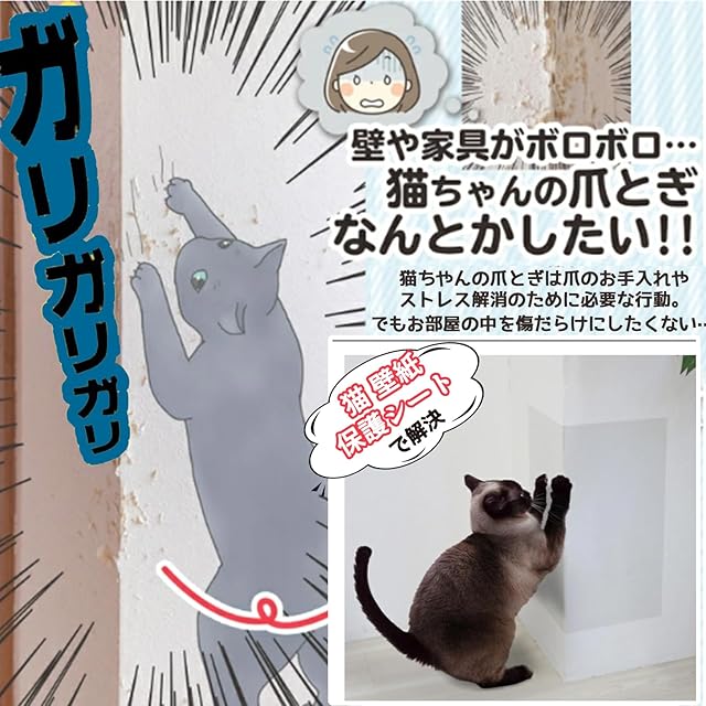 ✅【貼りやすい&カットしやすい】猫 壁紙保護シートは剥離紙がマス目がついていて、カットしやすいし、使いやすい。貼りたい箇所のサイズを測りやすく、シワが入っても貼り直しも可能なので、貼る時に失敗しにくいです。一人でも簡単に貼れます。