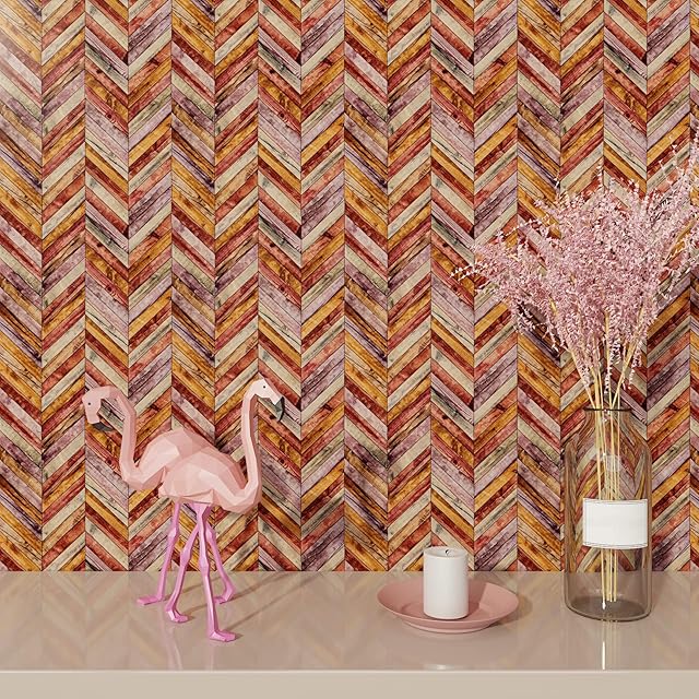 VaryPaper 壁紙シール のり付き 木目調 リメイクシート カッティングシート 木目シート はがせる壁紙 厚手 45cm×3m ヘリンボーン 補修 ビニールシート リフォーム キッチン インテリア キズに強い 防水 防油 おしゃれ リビング 寝室 浴室 家具 DIY テーブル キャビネット 賃貸OK | ascend