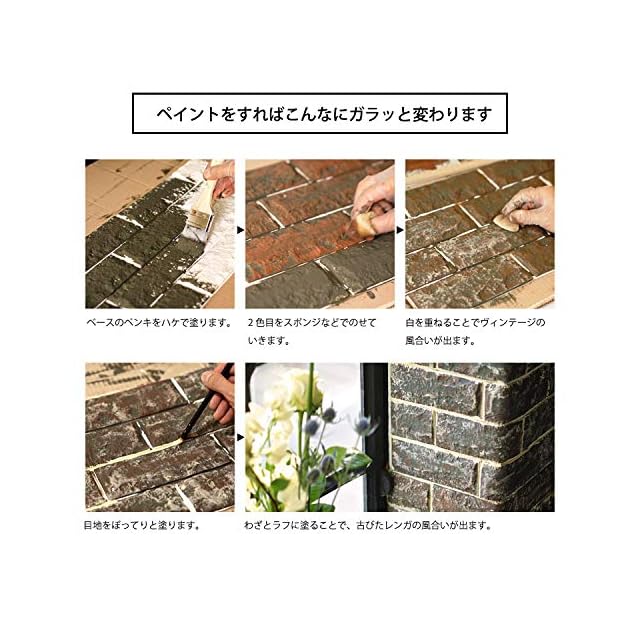 【自己粘着】クッションタイプのブリック壁紙です。シールタイプなので施工も簡単。無塗装し、無ツールし、自己粘着なので、簡単に綺麗に壁に貼ってはがせます。数分以内に装飾完成します。