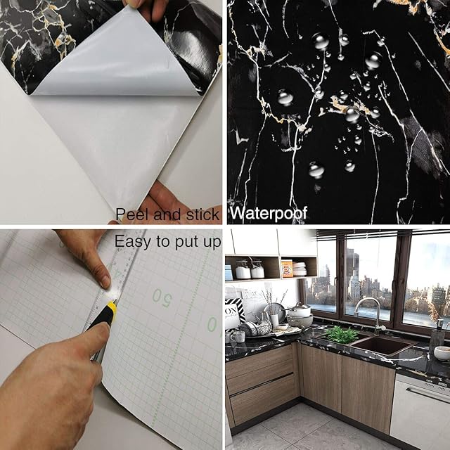 TOTIO 大理石 シート 床 リメイクシート 黒 カッティングシート 大理石 壁紙 シール 80CMx4M ビニール はがせる 防水 防油 耐熱 キッチン 浴室 テーブル 家具リフォームシール 接着剤付き ウォールス テッカー 石目調 | ascend